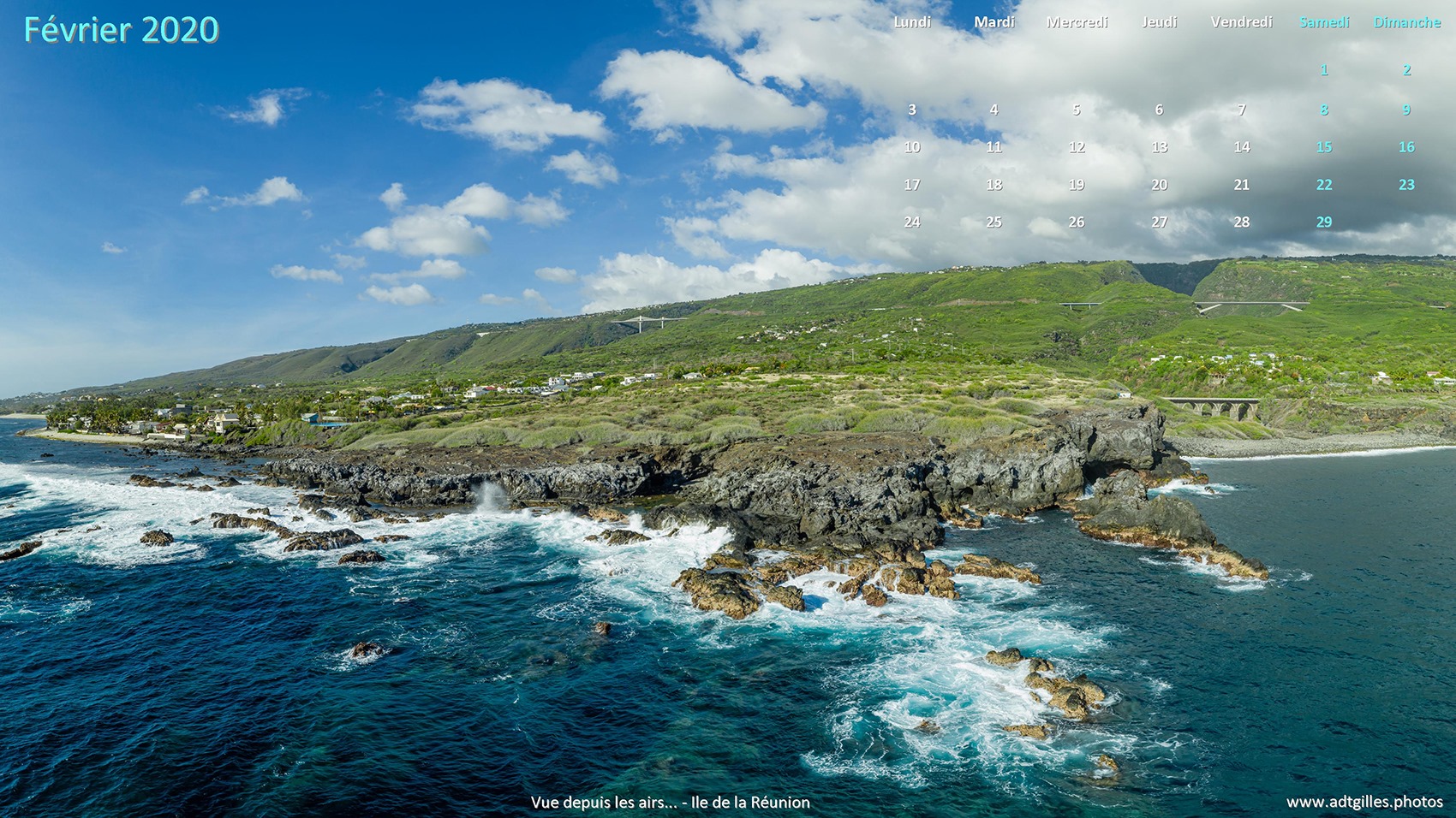 🇬🇧 Here are the 2 wallpapers for the month of February: a choice of a view of the west coast of Reunion Island photographed by drone, the superb European Bee-eater