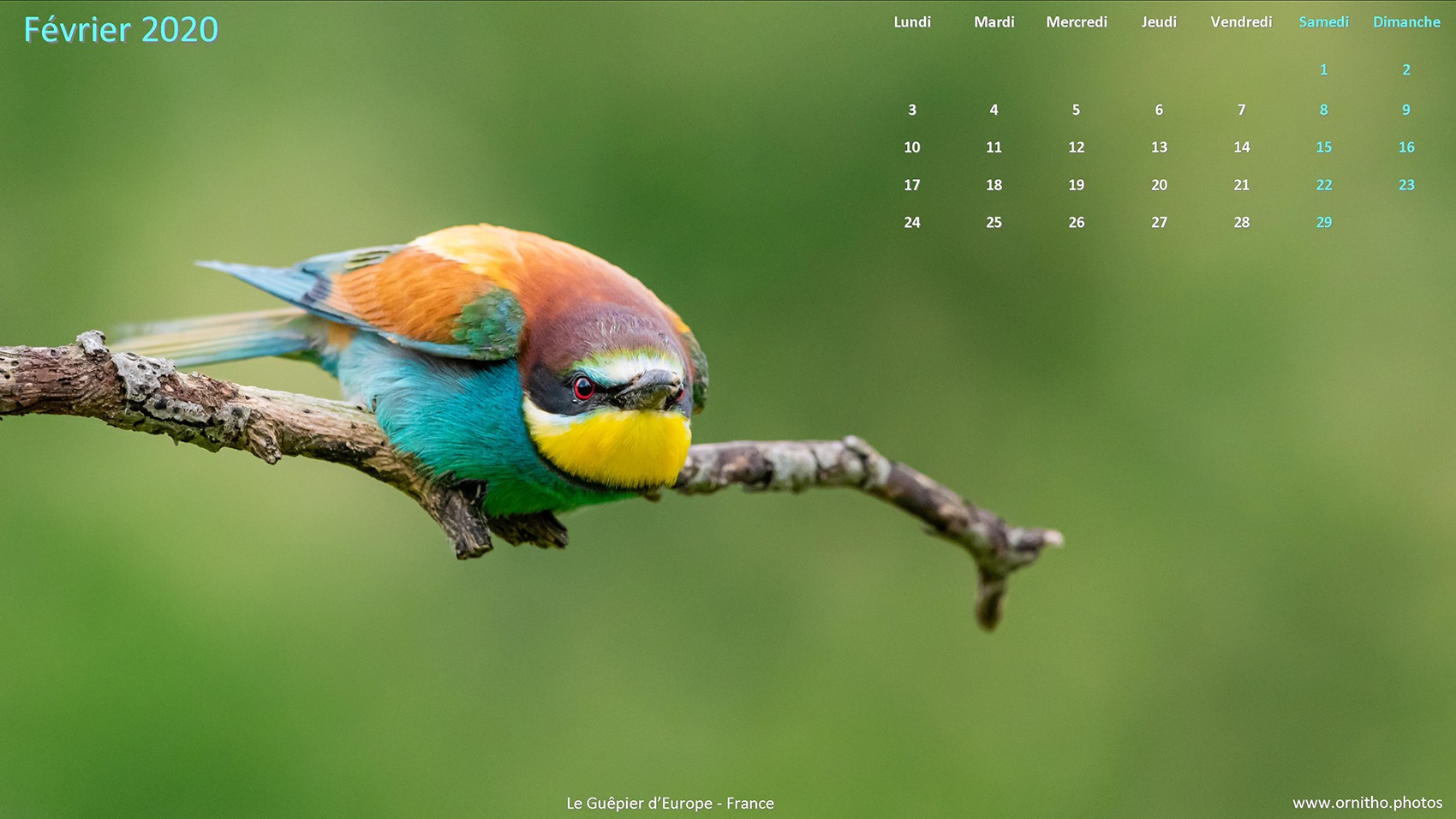 🇫🇷 Voici les 2 fonds d'écran pour le mois de février : au choix une vue de la cote ouest de l’Île de la Réunion photographié au drone, soit le superbe Guêpier d'Europe