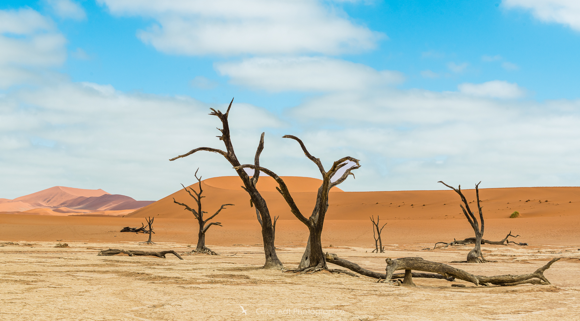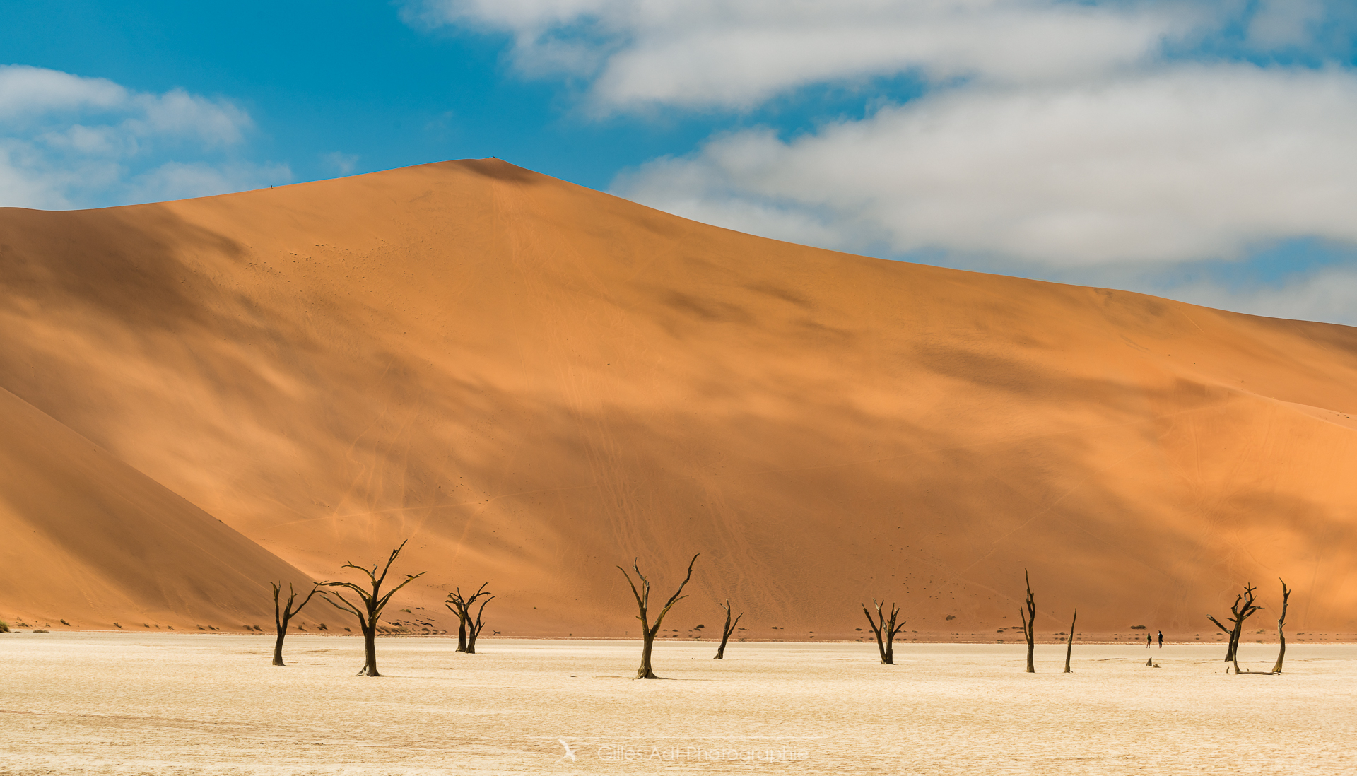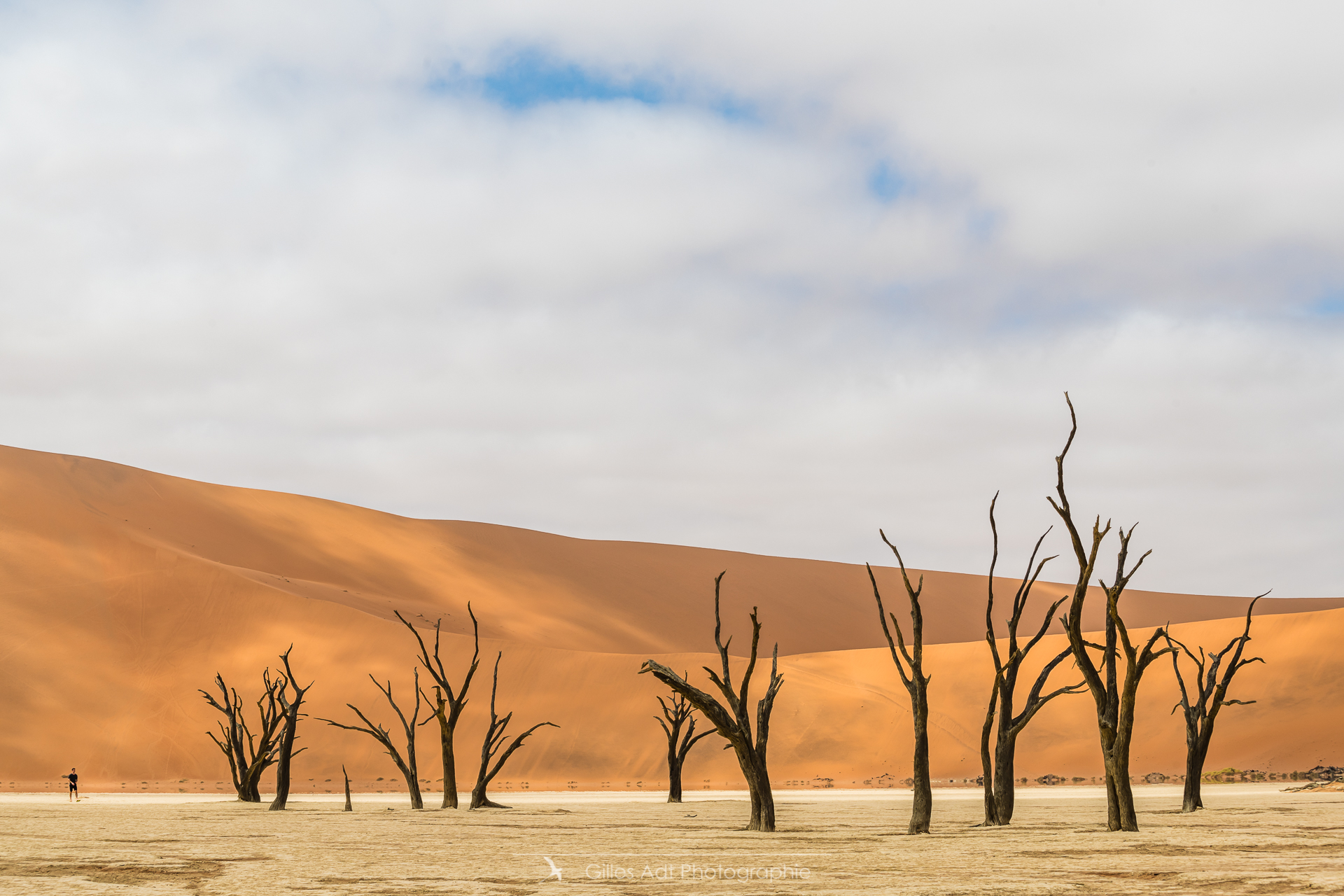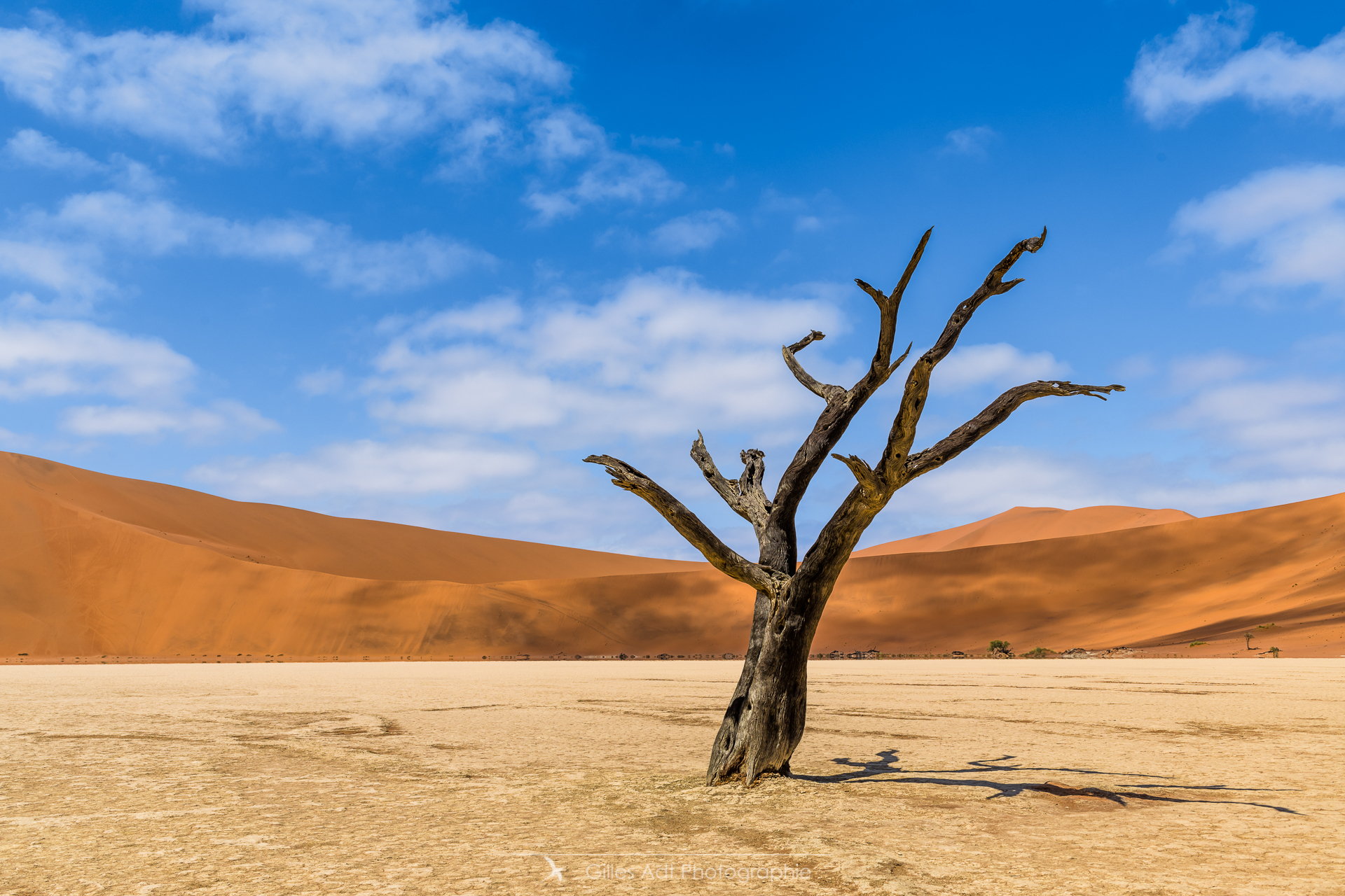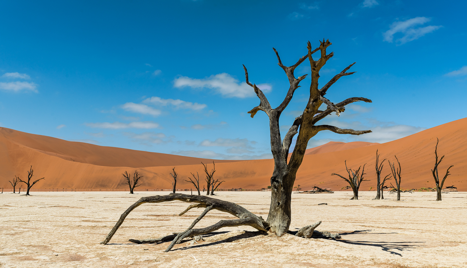 le Ded Vlei (ce qui signifie « le marais mort ») est une cuvette entourée des dunes les plus élevées du monde. Les acacias du désert qui parsèment ce lieu sont morts depuis 900 ans. Les acacias et Big Daddy Vue d’ensemble du Dead Vlei Acacias du désert Forêt pétrifiée Un acacia du désert Argile et acacia Bois mort Barrières de dunes La dune Big Daddy (350m) Solitaire pétrifié Les 3 frères La sentinelle Acacias, argile et dunes Acacia pétrifié Erosion