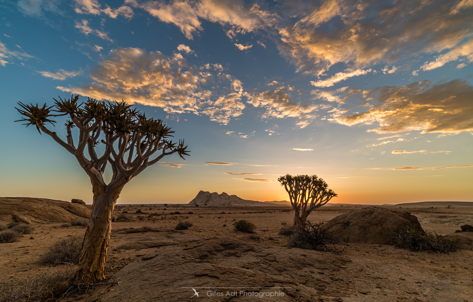 la Namibie, pays immense aux paysages majestueux et diversifiés. A découvrir de jour et de nuit. Une des chutes d’Epupa Dunes du Namib Le baboab d’Epupa Arbre du Namib L’arbre à carquois sous les étoiles Ciel d’orage au dessus des Epupa falls Nuit au Spitzkoppe Ciel d’orage L’arche du Spitzkoppe La nuit à l’arche du Spitzkoppe Le Spitzkoppe Fenêtre naturelle sous l’arche du Spitzkoppe Coucher de soleil aux arbres à carquois L’arbre et la dune