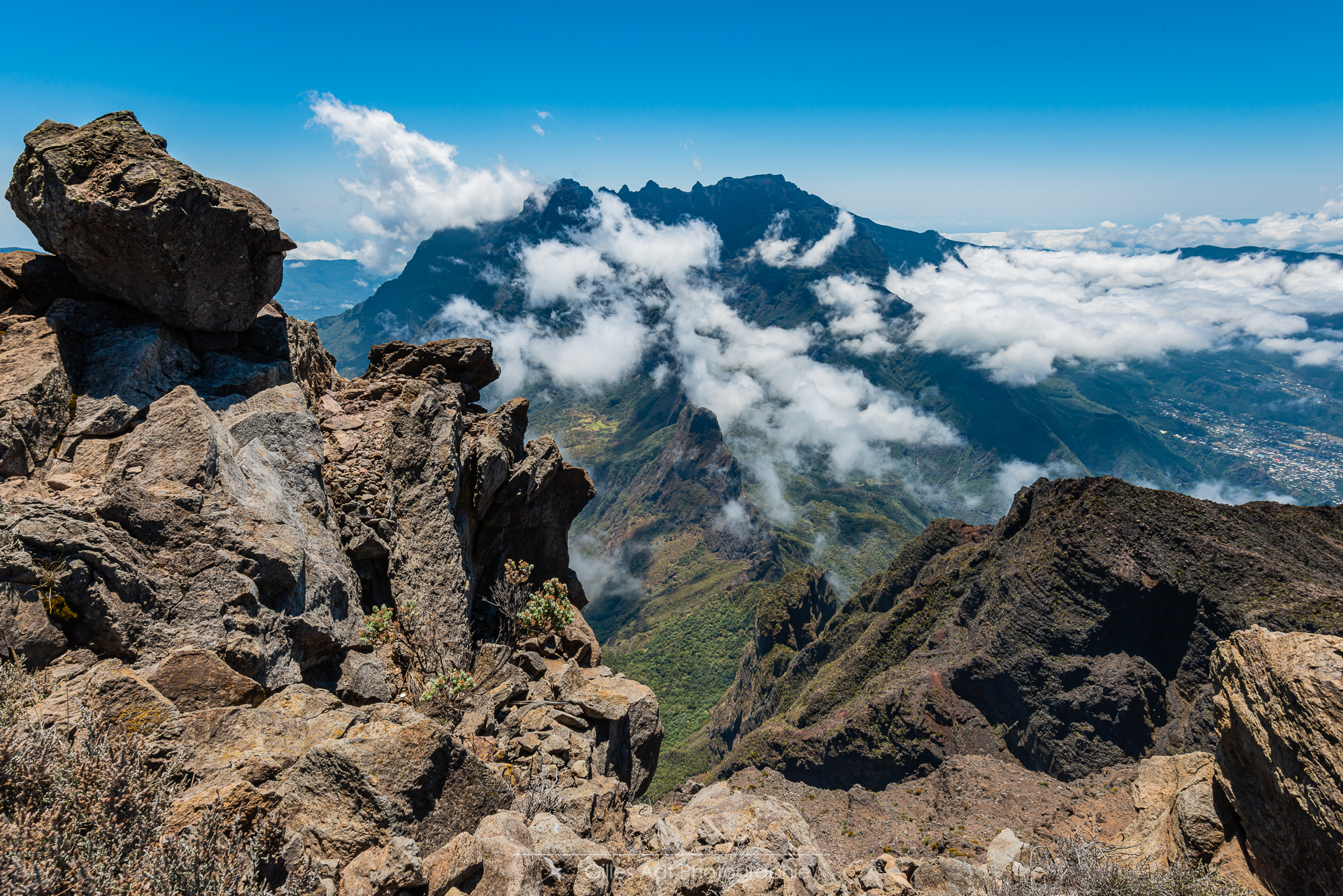 Juste des paysages de l’Île de La Réunion… cascades, palmiers, montagnes. La diversité sur un petit morceau de terre émergée. La cascade Niagara Les palmiers au lever du jour La houle à la Pointe des Châteaux Un tamarin de Mafate Le Cap jaune La cascade de bassin Nicole L’hélicoptère et le Trou de Fer Vers le Grand Benare Le Spectre de Brocken Fougère arborescente au dessus de Salazie La Plaine des Sables Panorama sur Mafate Le photographe et les orgues basaltiques La liseuse du Barachois Coucher de soleil vers le col des Boeufs